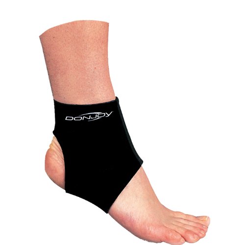 -. Binding : Health and Beauty -. Brand : DonJoy Braces -. Feature : DonJoy Neoprene Ankle Support is constructed of high quality 1/8"black neoprene / Provides compression for ankle sprains and soft tissue injuries / Provides warmth in cold weather sports / Heel cut-out for a low profile brace that fits most shoes / Can use in water -. Label : DonJoy Braces -. Manufacturer : DonJoy Braces -. ProductGroup : Health and Beauty -. ProductTypeName : HEALTH_PERSONAL_CARE -. Publisher : DonJoy Braces -. Studio : DonJoy Braces -. Title : DonJoy Neoprene Ankle Support