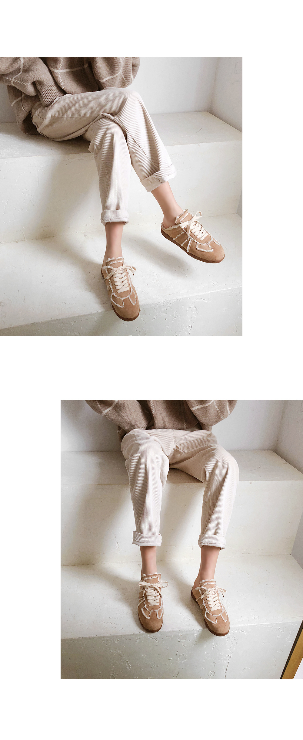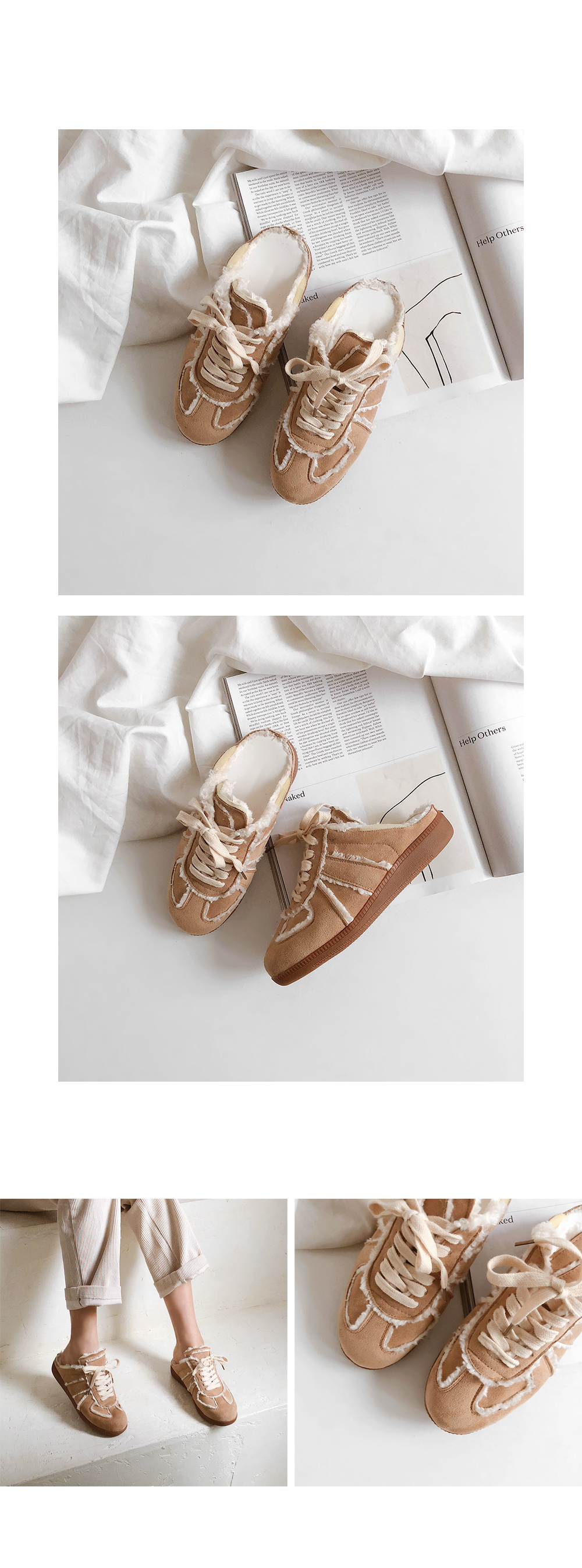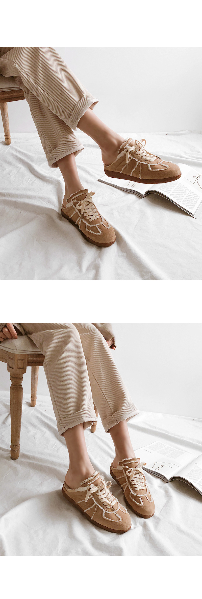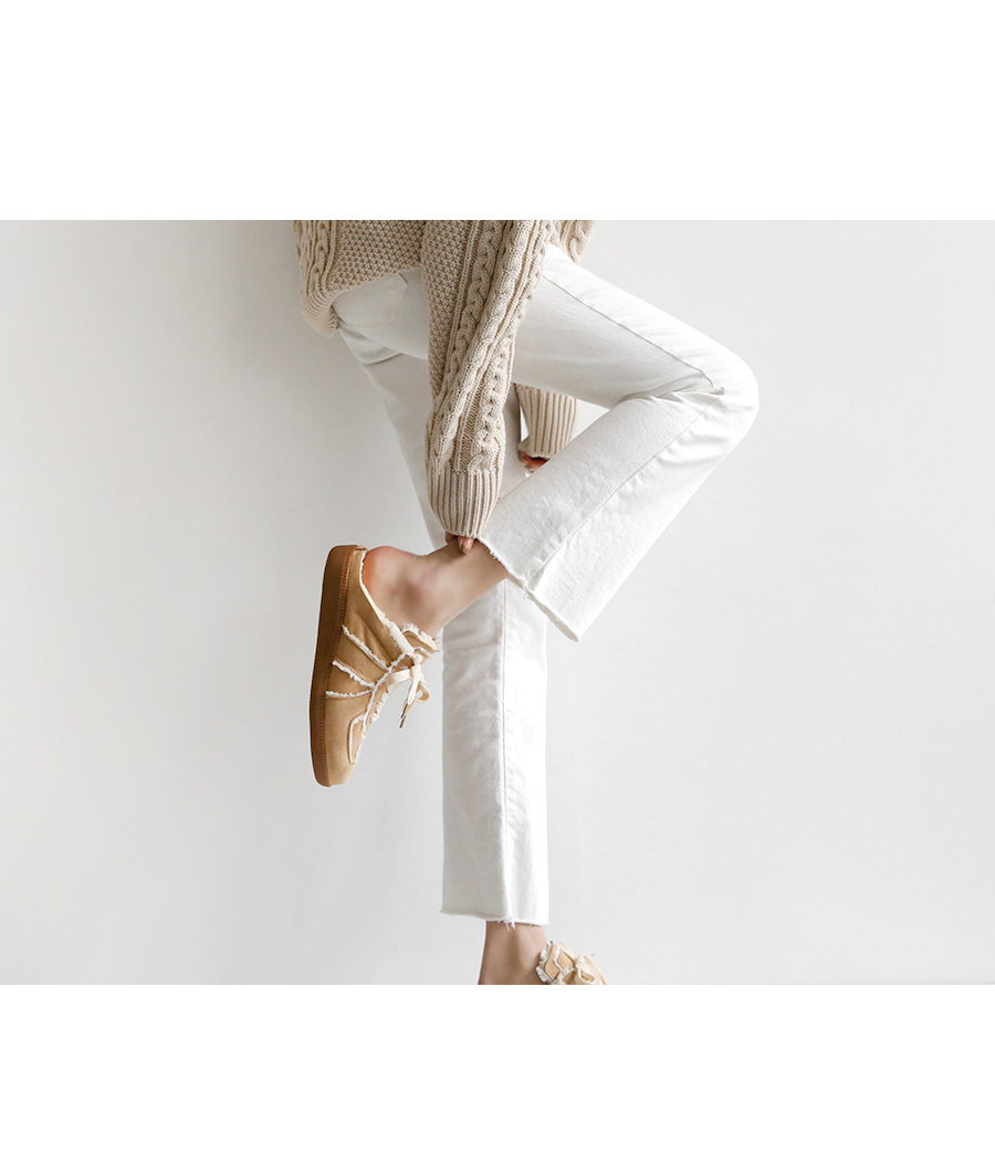 DETAILS - 소재 : 인조스웨이드 인조퍼 - 컬러 : beige - 안감 : 윗쪽털안감 - 피팅감 : 정사이즈 / 무게 : 보통인편 - 착화감 : 정사이즈로 편해요 - 모델피팅 : 235(37)