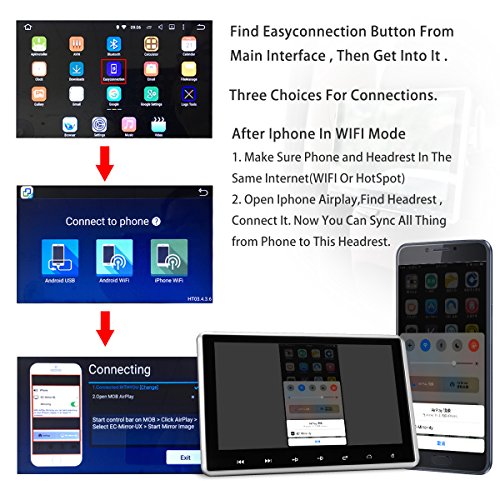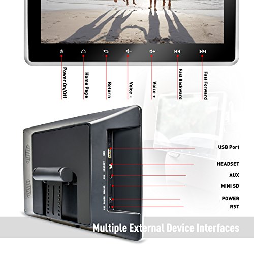 Headrest Video Player Monitor Android 5.1 System For Car 1080P 10.1 Inch Big Capacitive Screen 2 IN 1 Home Use and In Car Use With USB SD Port WIFI Support eRapta EA101 Black