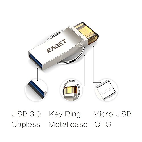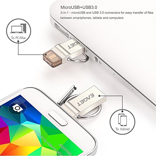 EAGET V90 Handy USB-Stick OTG Speicherstick Memory Stick mit duale steckern - USB3.0 und Micro-USB fur Tablets und Smartphones mit Schlusselring