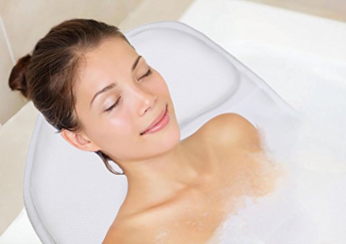 - ★ MOLD & MILDREW FREE AND EASY TO CLEAN - Our premium spa pillow specially adopts ANTI-BACTERIAL and open weave mesh material, allows water & air to flow through for quick drying, prevents bad odor and mildew from forming in and around your pillow. It is easy to clean by hand or machine wash. With convenient top hanging loop for easy drying or storage.