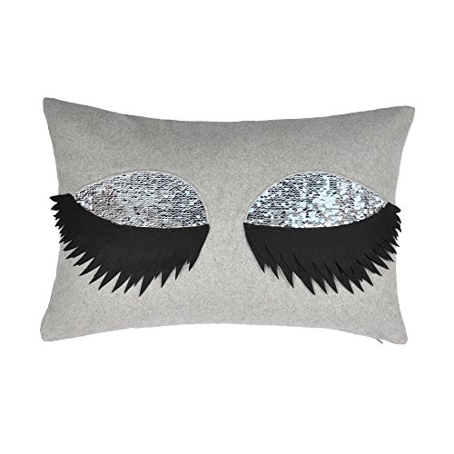 JW Long Eyelash Cushion Covers Magic Reversible Sequins Decorative Wool Accent Pillow Cases Home Sofa Car Wedding Pillowcases Silver Eye Shadow 12 x 18 Inch