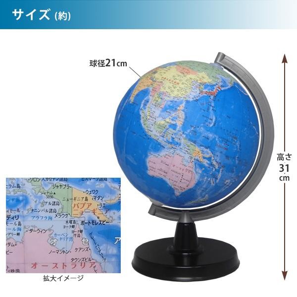 | 球径21cmの行政図(国や地域別に色分け)タイプの地球儀です 大きめ文字の採用や低反射仕上げなど 読みやすさにもこだわっています 日本地図付き |