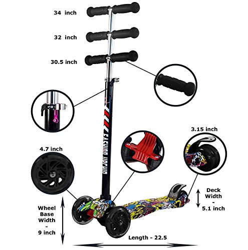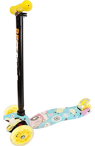 -. Binding : Misc. -. Brand : Generic -. Feature : ADVANTAGES: Smooth and quietest ride thanks to high quality wheels and a flexible fiberglass reinforced deck that absorb bumps in the sidewalk. The extra long rear brake covers the entire back tire for reliable stops. / ADJUSTABLE: Easily adjust the height of the T-bar to 3 height which is suitable for children from age 2 to 6 and lasts as your little one grows. / SAFETY: Rear-brake provide control & safety. We strongly recommend that children wear helmets and knee pads when riding. / USAGE: Easy to assemble. No tools required. This scooter support folding, easy to carry and install. / AGE GROUP: Perfect scooter for ages 2 - 6 years, up to 100 LB. -. IsAutographed : 0 -. IsMemorabilia : 0 -. Label : Generic -. Manufacturer : Generic -. MPN : CON2-OXE -. PackageQuantity : 1 -. PartNumber : CON2-OXE -. ProductGroup : Sports -. ProductTypeName : SPORTING_GOODS -. Publisher : Generic -. Studio : Generic -. Title : 3 Wheel Kick Scooter P.R.Int Street Smooth Ride For Kids Adjustable T-Bar Wheel Height Up To 100 LB