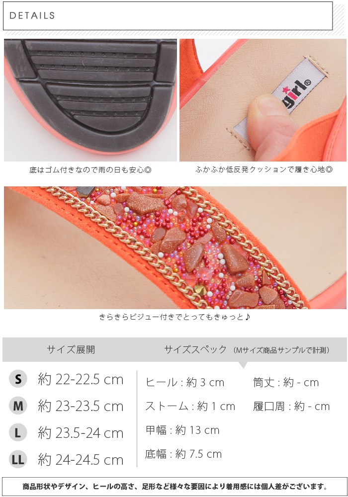 | 実寸 | ヒール:約3cm ストーム:約1cm