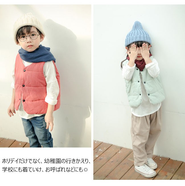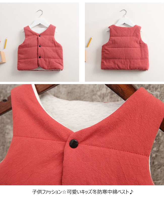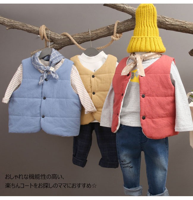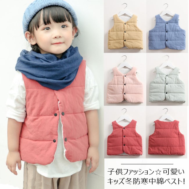 子供ファッション☆可愛いキッズ冬防寒中綿ベスト♪