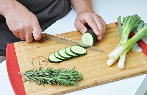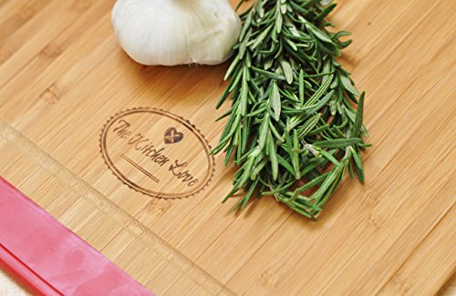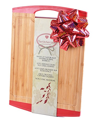 The Kitchen Love Large Wooden Bamboo Cutting Board -Anti slip-Chopping Board with Juice Groove and Handle-Anti microbial- Chopping and Serving Tray-Silicone Edges-Crack Resistance