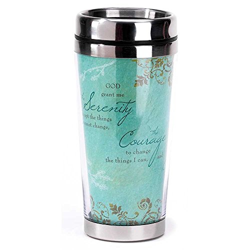 Filigree Damask on Teal Serenity Prayer 16 Oz. Stainless Steel Insulated Travel Mug with Lid