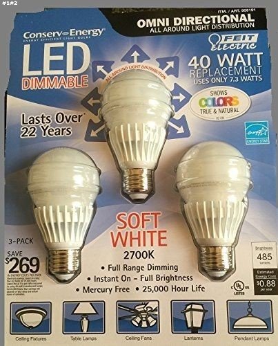 Feit 7.3 Watt A19 Dimmable LED Light Bulbs 3-Pack (equiv to 40 watts)