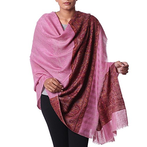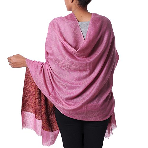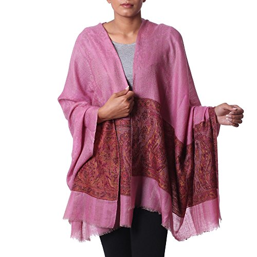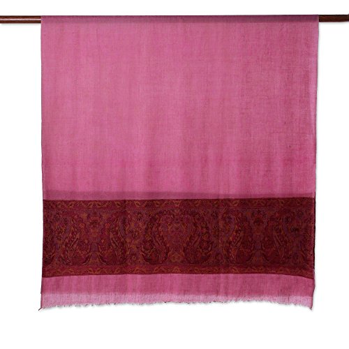 About this item: Vibrant magenta gives way to paisley motifs in this truly enchanting shawl from India. Karmabhoomi designs the shawl, diligently handweaving it in the jacquard technique from pashmina cashmere. Lightweight and warm, pashmina cashmere represents an old cultural tradition from Changthang. It is collected by nomads from domesticated goats, which grow long hairs under their fur to protect against the cold weather there. Size: 86" L x 41" W - Dry clean only