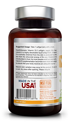 -. Binding : Health and Beauty -. Brand : Health Genesis -. EAN : 0849440001686 -. Feature : Health Genesis Vitamin D-3 2000 IU 240 Softgels / 2000 IU 240 Softgels / Great Gift Idea -. Label : Health Genesis -. LegalDisclaimer : This information is intended for your general knowledge only and is not substitute for professional medical advice or treatment for specific medical conditions. This information is not intended to diagnose, treat, cure or prevent any disease. Always seek the advice of your qualified physician or other health care provider with any questions you may have regarding a medical condition. Keep out of reach of children. -. Manufacturer : Health Genesis -. MPN : 0849440001686 -. NumberOfItems : 1 -. PackageQuantity : 1 -. PartNumber : 0849440001686 -. ProductGroup : Health and Beauty -. ProductTypeName : HEALTH_PERSONAL_CARE -. Publisher : Health Genesis -. Studio : Health Genesis -. Title : Vitamin D3 2,000 IU 240 Softgels - Olive Oil Strong Bones Immune Health Support for K-2 -. UPC : 849440001686