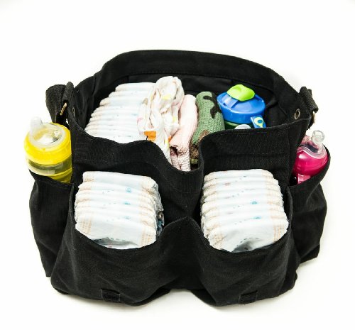 - Feature : 2inch Wide Adjustable Shoulder Strap / Four Outside Pockets - Great for bottles and diapers / Inside Zipper Pouch / Enormous Main Compartment / Canvas with Brass Hardware