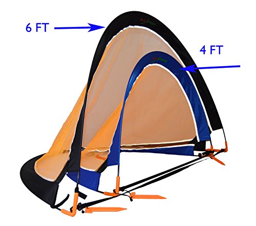* Light weight but it is firm and durable, because it is made from strong Oxford fabric & reinforced mesh and high tensile solid fibre glass poles. When shopping around for a pop up goals, note that what most of other companies goals are 190T polyester fabric & normal mesh,thin poles, indicative of inferior quality.