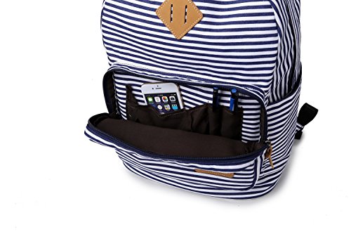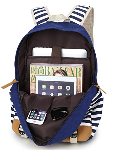 Studio : wesell Publisher : wesell Binding : Personal Computers Product Description Products Features: 1. Closed type: zipper. it's very convenient to open and close, easy to get what you need. 2. Popular elements: classical striped. 3.Approx Dimensions:45*29*17 cm (17.7*11.4*6.7 inch). 4.Suitable for girls and boys for school study, camping, hiking, picnic, climbing; Can be used as school bags, travel bag, daypack, casual rucksack. You can put A4 books, 14" laptop, ipad, glasses, wallet, keys, earphone, power bank, cell phone and document in the bag. 5.This sturdy canvas backpack has padded straps for comfort, padded cushion protection for laptop or tablet and padded cushion to protect your back when you carry something heavy.