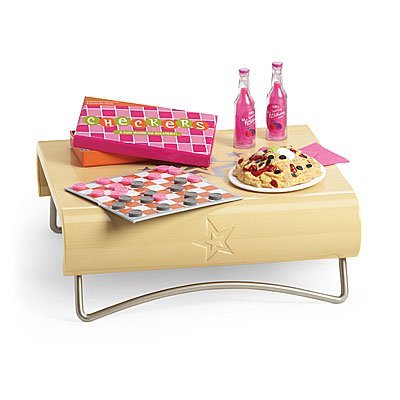 - Get set for giggles and girl time with this fun set! It includes: A table set low to the floor—perfect for playing games! A checkers board and 24 pink and gray checkers your girl can really play with, plus game instructions that store inside the game box Pretend snacks and supplies for sharing: a nacho plate, two wild-berry drinks, and two paper napkins