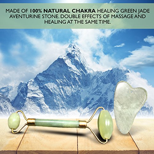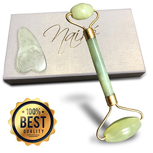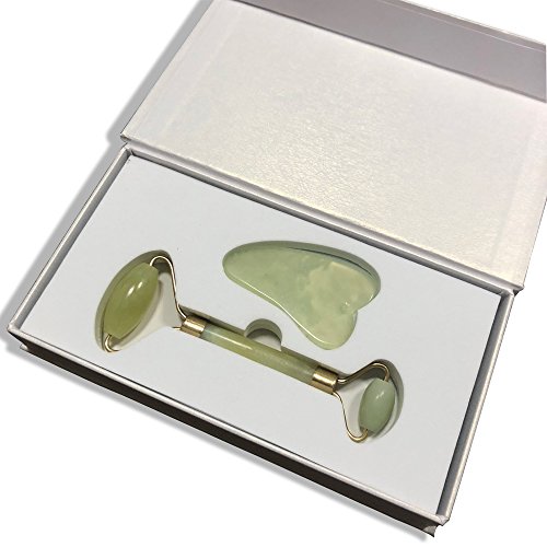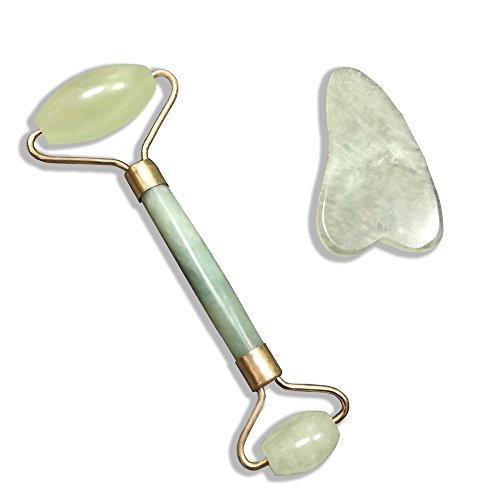 Brief Description Jade is a cleansing stone used in Chinese medicine to aid the body's lymphatic and filtration system to get rid of toxins. jade roller and gua sha is handcrafted with premium 100% natural jade stone. It includes double rollers and gua sha scraping tool. Treat yourself to a rejuvenating and healing facial massage! Package includes- Jade Roller, Gua Sha and Quick Start Guided PLEASE NOTE: Due to the nature of the jade stone, each piece varies in color - from very pale to darker green to opaque and translucent. Please take great care when handling the jade roller and gua sha . We recommend using gentle pressure as skin is delicate.Feature