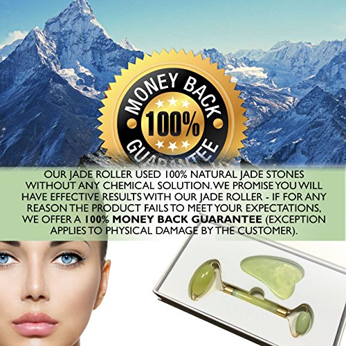 ✔️•EXPERIENCE THE BENEFITS OF PREMIUM JADE ROLLER AND GUA SHA- Our High-Quality Jade Roller and Gua Sha improves blood circulation and skin tone, improve elasticity of the skin, Promote lymphatic drainage. This massaging technique will improve microcirculation of facial blood vessels, increase blood flow and enhance the functioning of the lymph nodes. Perform this treatment at least 2-3 times a week to help rejuvenate your beautiful skin.