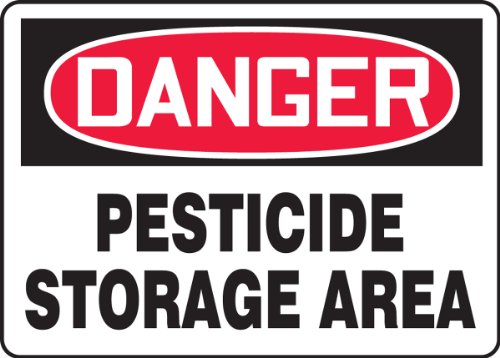 Accuform MCAW100VA Aluminum Safety Sign, Legend "DANGER PESTICIDE STORAGE AREA", 7" Length x 10" Width, Red/Black on White