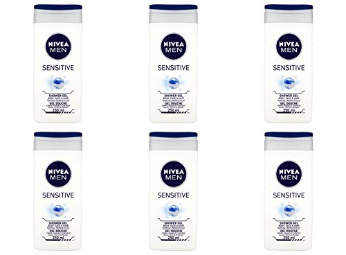 -. Title : 6 X 250ML NIVEA FOR MEN SENSITIVE SHOWER GEL - BODY FACE & HAIR
