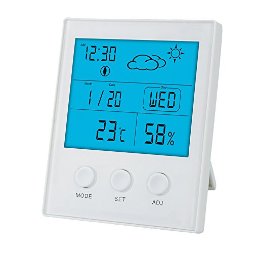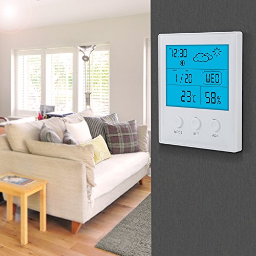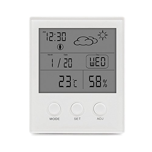 Intsun Digital Hygrometer Thermometer, Multifunctional Temperature and Humidity Monitor Humidity Meter Temperature Gauge with LCD Screen/Alarm Clock/Date/Weather Forecast for Baby Bedroom Office
