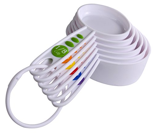 The Set includes 6 Measuring Cups: 1/8, 1/4, 1/3, 1/2, 3/4 and 1 Cup featuring easy to read numbers