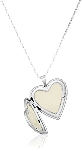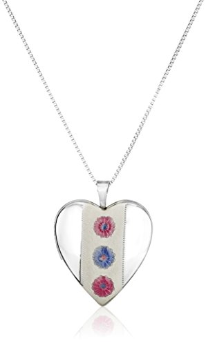 Sterling Silver Heart with Pink and Blue Flowers Locket Necklace, 18"