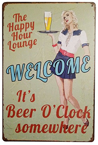 ERLOOD Welcome The Happy Hour Lounge Retro Vintage Metal Tin Sign 12 X 8 Inches