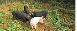 自然に囲まれた開放型の豚舎で、豚にストレスのかからない、暮らしやすい環境作りに配慮しつつ自然にこだわった飼育を行っています。
