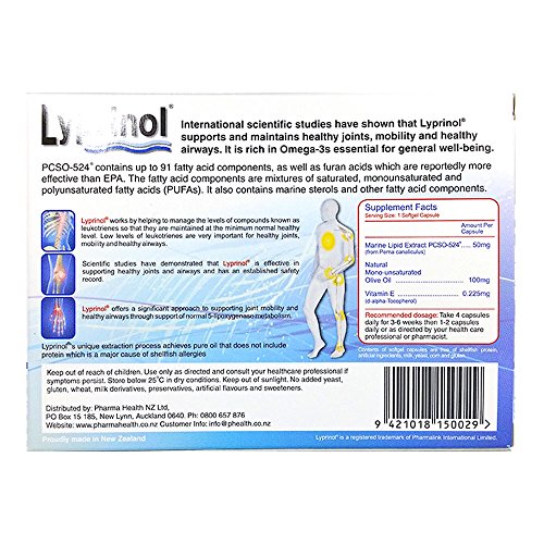 -. Binding : Health and Beauty -. Brand : LyP.R.Inol -. EAN : 9421018150029 -. Feature : Internationally renowned for purity, quality and effectiveness / Contains up to 91 different Omega-3s and other active marine components / Scientific research demonstrates support for joint health, suppleness, normal mobility and healthy breathing / Extracted using rigorous patented processes and unique, quality-control checks (MAF and International Standards) / Internationally recommended by doctors. LyP.R.Inol® assists in maintaining an active lifestyle -. IsAdultProduct : 0 -. Label : Pharma Health -. Manufacturer : Pharma Health -. MPN : PL-200 -. PackageQuantity : 1 -. PartNumber : PL-200 -. ProductGroup : Health and Beauty -. ProductTypeName : HEALTH_PERSONAL_CARE -. Publisher : Pharma Health -. Size : 50 Capsules -. Studio : Pharma Health -. Title : Pharma LyP.R.Inol® Pcso-524® 200 Capsules New Zealand Green Lipped Mussel Extract Oil Joint Health Support & Mobility