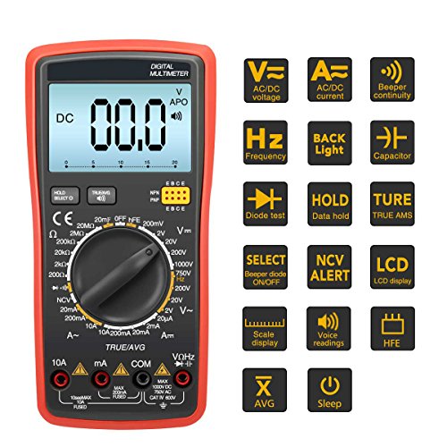 - True RMS, Auto Ranging Measurement. Auto power off and with Voice / Sound Control LCD Backlight Display (the backlight also can be controlled manually.)