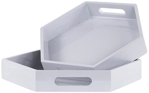 Benzara Hexagonal Serving Tray with Cutout Handles-Set of 2-White