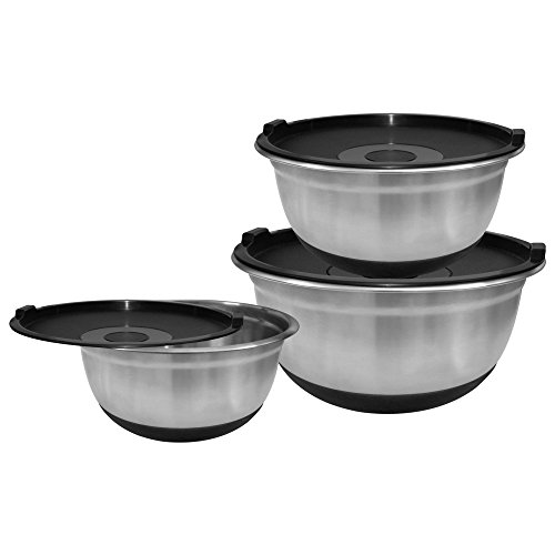 nu steel TG-GASB-3L German Anti Skid Set/3 Silicon Base .5MM Lid Bowl 3, Shiny