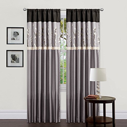 Faux silk with floral embroidery. 84-inch by 42-inch Panel. Rod pocket slides onto curtain rod for installation.