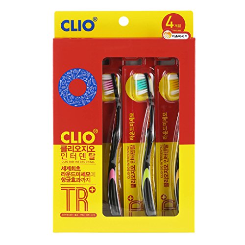 -. Title : CLIO GIO-INTERDENTAL Toothbrush, Multi Length Cross Rounded Ultra Soft Bristles, Gum Protection - 4 Pack (Pink / Blue / Green / Orange)