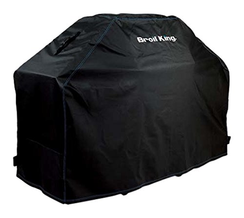 -. Feature : Fits the following: Broil King® gas grills: BaronTM 300 Series, MonarchTM Series (2014 and newer) / Water- and UV-resistant PVC construction; 900 x 900 denier polyester lining / Mesh venting for enhanced air flow and moisture resistance; extra-reinforced seams / Hook-and-loop closures provide a secure fit; molded rubber handles / Measures 23 inches deep by 51 inches wide by 46 inches high