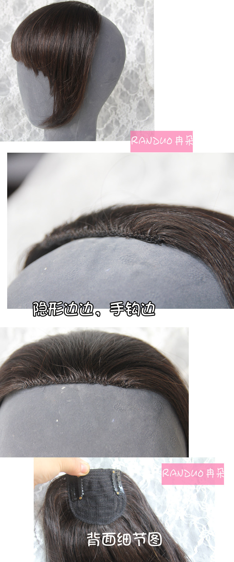 市场上出售的很便宜的刘海都是有边露出来的(下面有详细介绍哦),而且都是薄一点的 妹妹们一般戴起来感觉会比较假 有时候必须借助头箍才好看一点? 现在HOHO给妹妹们解决了这个难题 "隐形加厚刘海"让妹妹们摆脱头头箍的困扰?