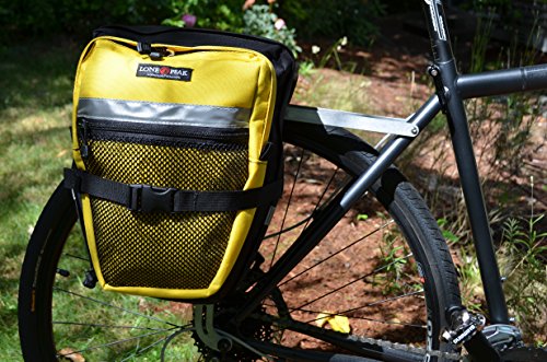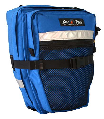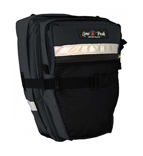 Studio : Lone Peak Publisher : Lone Peak Product Description Made in the USA since 1979, the Lone Peak Mill Creek Panniers are a rugged set of panniers well-suited for touring through the countryside, or for your toughest urban excursions. Made from super-durable, water resistant 1000 denier textured nylon the Mill Creek Panniers are spacious and can hold up to 2,000 cubic inches. Perfect for extending touring with its large capacity, or for urban riders who need some extra storage space when on-the-move, each pannier is conveniently sized to fit a standard grocery bag. The Mill Creek panniers include; an extra-large main compartment that unzips the whole way, a large sized front outer compartment that unzips about half-way, an outer zippered mesh pocket for storing wet or dirty items, top carrying handle when off the bike, and a horizontal cinch strap to secure to your load. The Millcreek Pannier fastens securely to your bike rack with Lone Peak's universal locking clips and lower bungee suspension system so your panniers won't jump off the rack while riding on rough roads or when you are jumping off of curbs. Another great feature is the ability to replace all racks clips, should you change to a different diameter rack. The Millcreek Pannier is also lined with 3M reflective fabric for added visibility and rider safety. These panniers will work with front or rear rack systems. Lone Peak has been producing technical cycling gear in the USA since 1979 and our products are built to last a lifetime. All Lone Peak products carry a lifetime guarantee against manufacturing defects for the original owner. 0