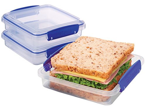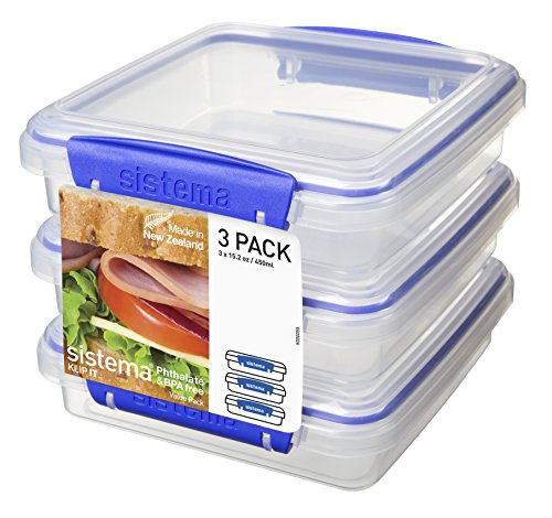 Sistema Klip It Collection Sandwich Box Food Storage Container, 15.2 Ounce/1.9 Cup each, Set of 3