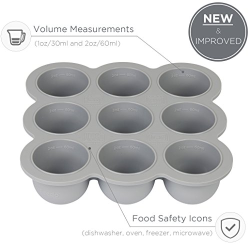 EASY TO REMOVE & GENEROUS 2.6 OUNCE PODS - 9 x 2.6oz portions means it's the perfect size for your growing baby. Fill the pods up to half full early on, and up to completely full as your baby grows. No need for different size trays! The wide, round shape of each pod and the sturdy base of the tray releases each portion with minimal effort - no more twisting and sore fingers and no breaking or cracks like with baby food glass jars!