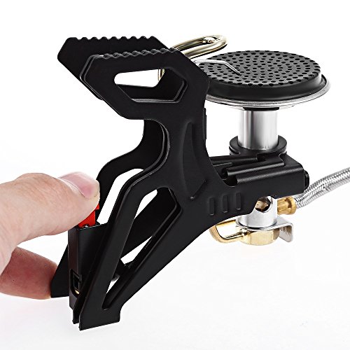 -. Feature : - Suitable for camping, hiking, cycling, etc. / - With electronic ignition, more convenient. / - Made of high strength aluminium alloy and stainless steel, very strong and durable. / - With multidirectional and thicker supports, very stable and portable, suitable for all kinds of pots.