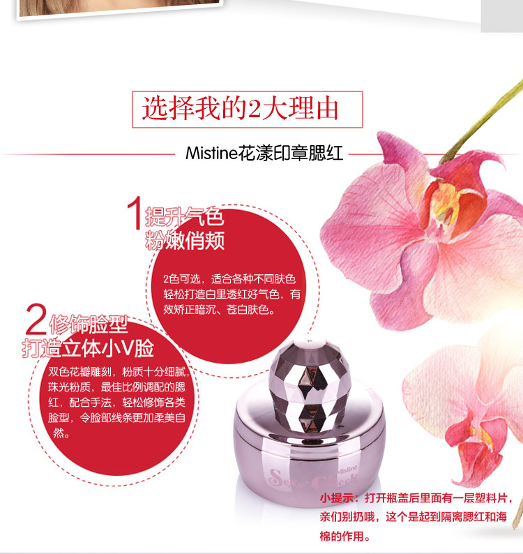 小提示:打开瓶盖后里面有一层塑料片,亲们别扔哦,这个是起到隔离腮红和海绵的作用。