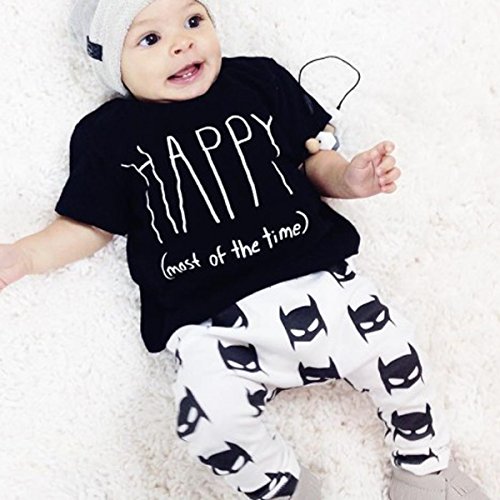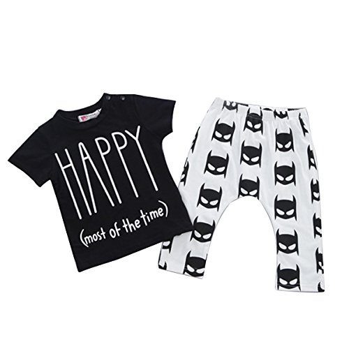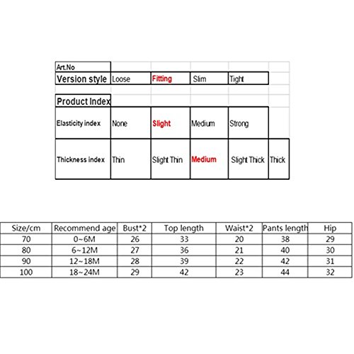 -. Binding : Apparel -. Brand : maifeng -. Color : Black -. Department : unisex-baby -. Feature : Size 70cm: recommend for 0-6 months baby / Size 80cm: recommend for 6-12 months baby / Size 90cm: recommend for 12-18 months baby / Size 100cm: recommend for 18-24 months baby / Please note that the recommend age is just for reference, it doesn't fit all people. For details, please view the size chart in the picture before your purchase. Thank you! -. ProductGroup : Apparel -. ProductTypeName : SHIRT -. Title : 2pcs Funny Newborn Baby Boys Girls Outfits T-shirt Tops+Pants Casual Clothes Set