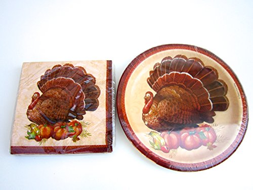 Holiday Fall Thanksgiving Elegance Lunch Plate and Beverage Napkin 2 Piece
