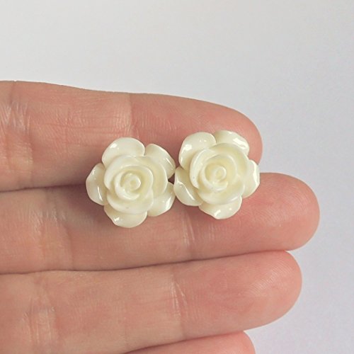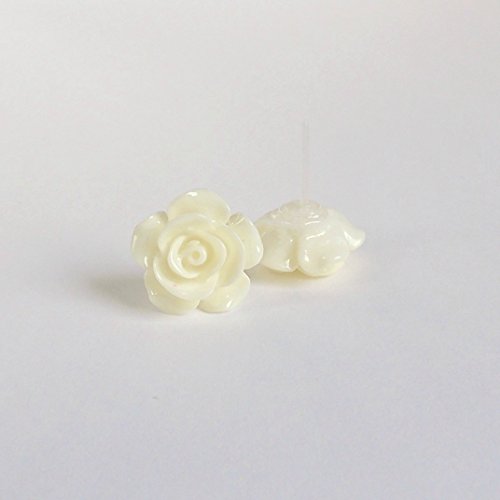 -. Title : 15mm Ivory Rose Plastic Post Earrings for Metal Sensitive Ears