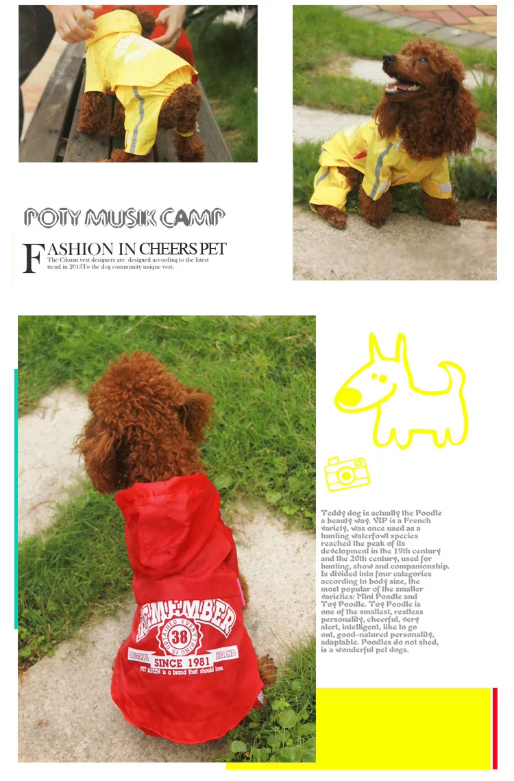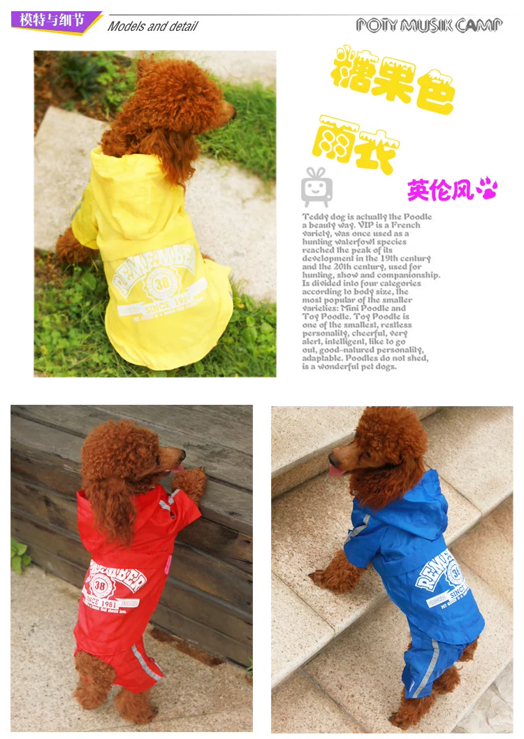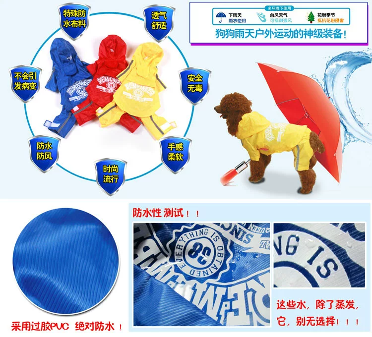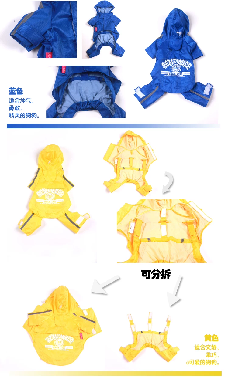 又推出一款又萌死人的雨衣出现啦,挡风、挡雨、挡雪、挡太阳哦,质量真是好的没话说的呢,过胶PVC的面料,穿上之后出门可是超级拉轰的啦~~而且尺寸也很大哦,一般的话大的狗狗都可以穿上的哦~~让狗狗们爱上雨天吧!
