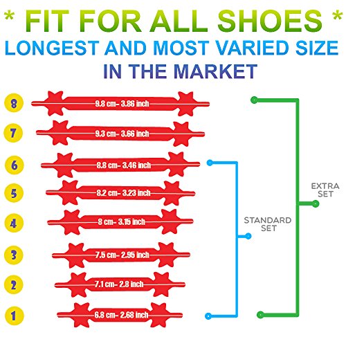 - Feature : ✓ FIT ALL SHOES - 8 different sizes, varied from 2.68'' to 3.86'', the longest available to fit most US footwear / ✓ BUILT TO LAST - 100% high quality durable and environmental friendly silicone material that can stretch up to 1.5 times / ✓ EASY TO INSTALL & LOCK - Innovative design with long tails to easily pull in and double hooks to make it stay put during strong movement / ✓ NO MORE DIRTY SHOE STRINGS - FunLaces has blank surface which is extremely easy to clean / ✓ FASHION COLORS - Unique colors customized by FunFitness - Rich Black / Snow White / Fiery Red / Strawberry Ice Pink / Neon Yellow / Vibrant Orange / Cyan Blue / Fluorescent Green and more to join the colorful party