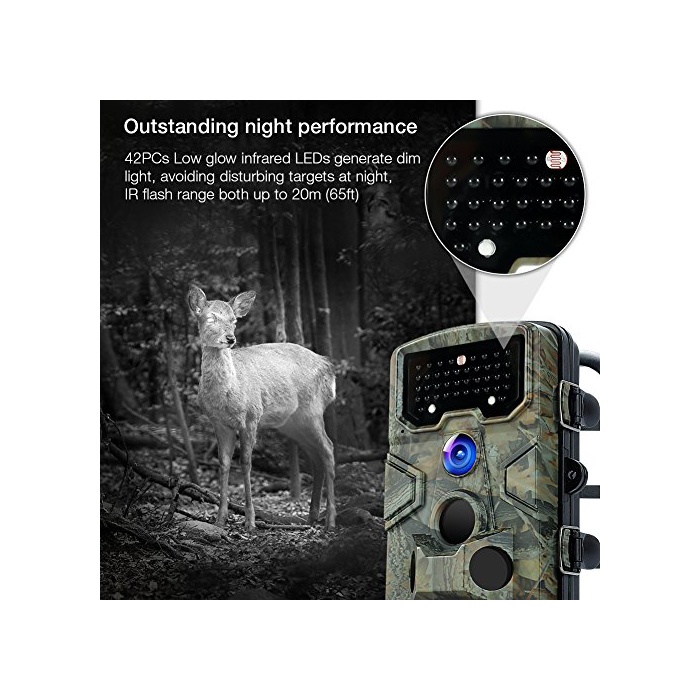 【저광 적외선 기술】42 개LED를 장비 한 트레일 카메라는,어두운 환경 하에서도 밝은 플래쉬를 만들기 없기 때문에,은폐에 야생 생물의 감시,주택의 감시 등 모든 옥외 용도로 최적입니다.IS보호 등급 IP54의 방수 방진 사양으로우나 사먼지로 쬐어지는 옥외에 설치가 가능합니다.단3건전지8개에 최장6인지(든가) 월의 대기 시간.