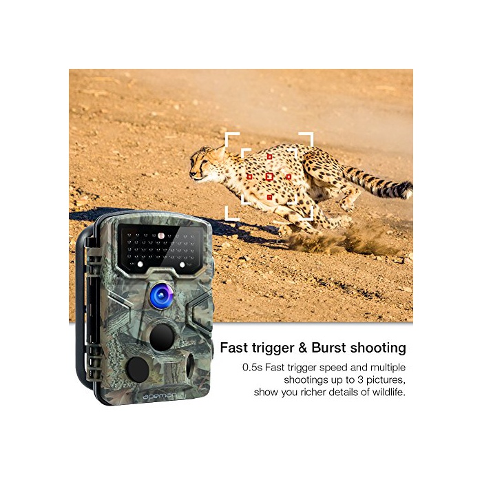【우수한 감지 능력】120°광각과 PIR센서를 탑재하고, 대상 대부분 감시 촬영 범위를 큰폭으로 넓힙니다.이 수렵 카메라는 1 초중(안)에 트리거에 옵니다.적외선의 감지 거리는 20m이므로,씬을 촬영 토로하는 것을 걱정하지 않습니다.