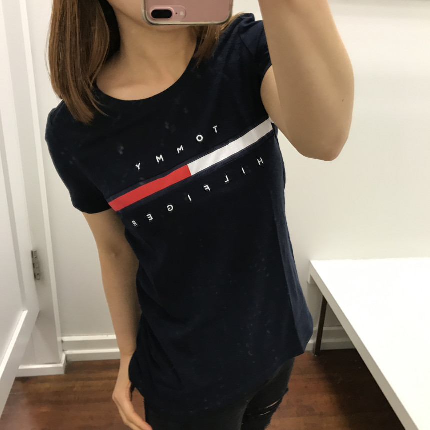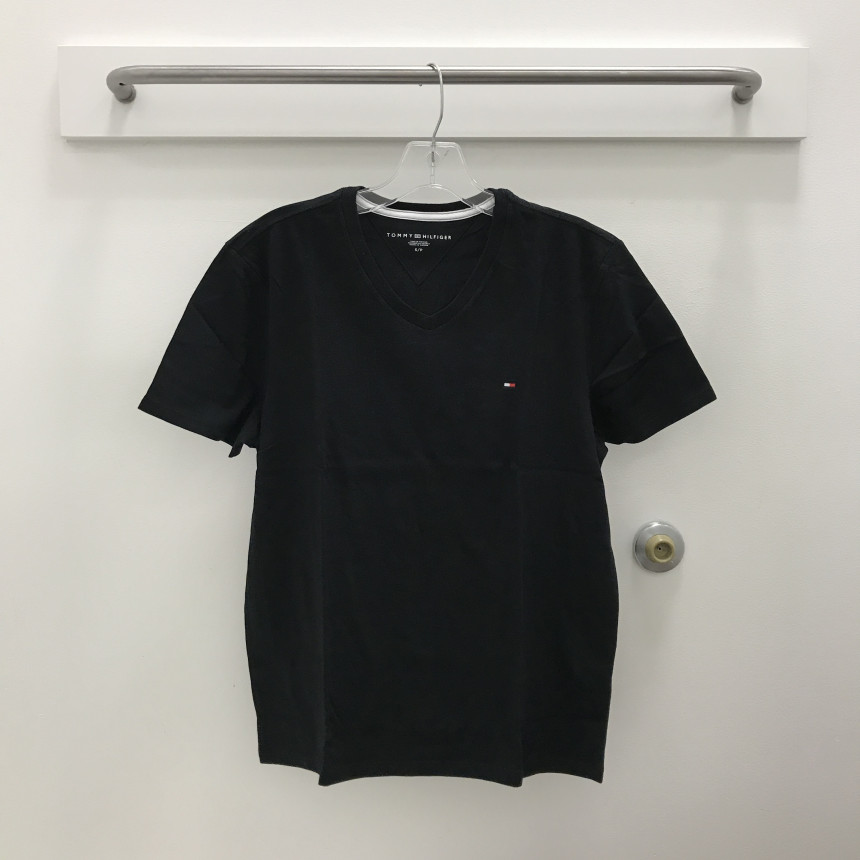 ブラックTシャツにトミーヒルフィガーの刺繍が