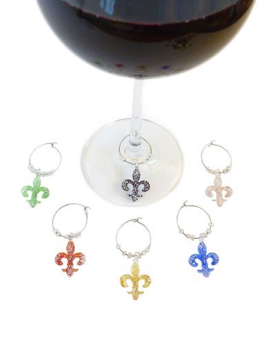 -. Feature : Hand-made art glass wine charms / Metallic metal-flake finish / Classic fleur de lis design / 6 multicolored charms per set / Perfect as wedding & party favors, wine hostes gift, valentine's day gift and many more